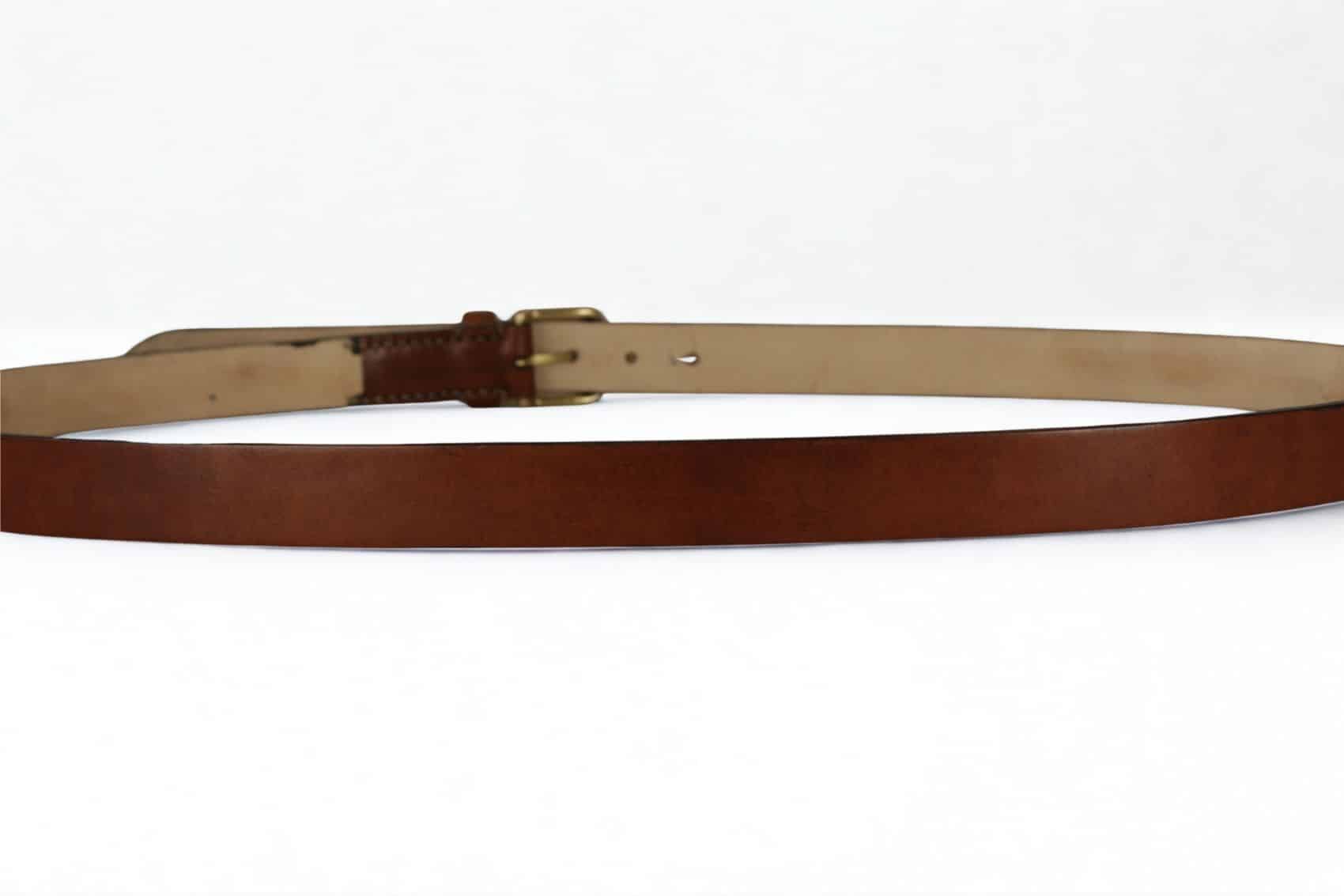 This casual belts has a solid brass buckle, is handstiched and is made for years of use.